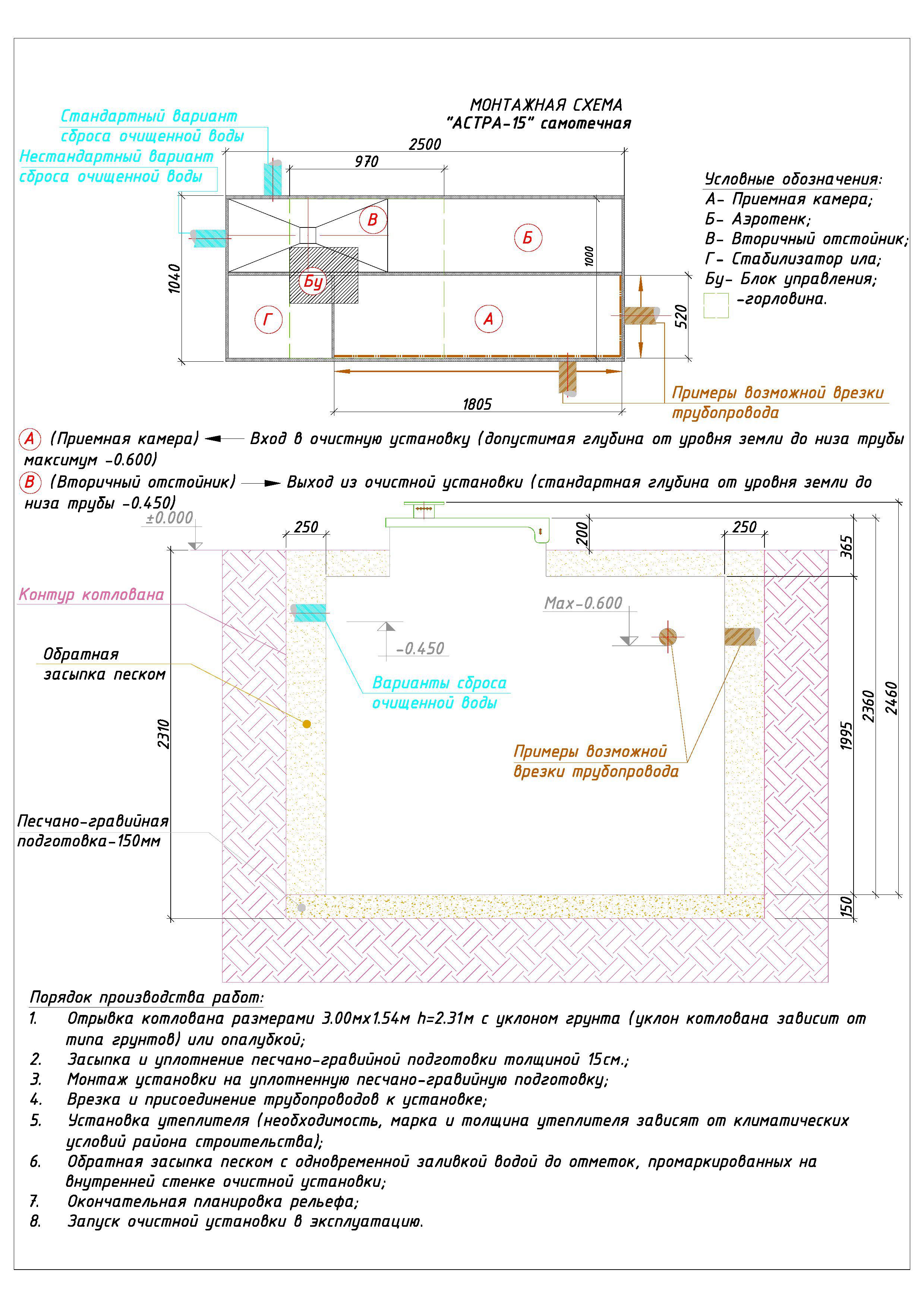 Устройство септика ниже отметки цокольного этажа.